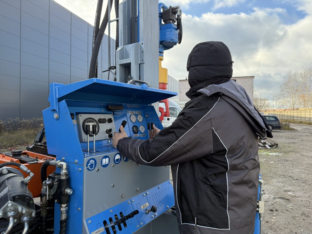 Urządzenie dedykowane do wykonywania pionowych odwiertów do studni głębinowych oraz do instalacji pod montaż pomp ciepła o początkowej średnicy odwiertu do 300 mm, do głębokości 200m (w zależności od zastosowanej pompy płuczkowej).